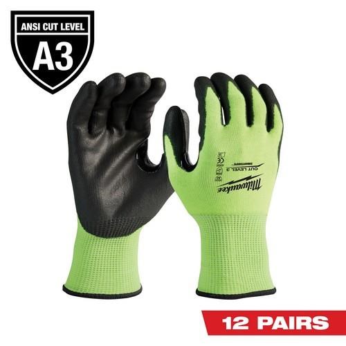 Pair High Visibility Cut Level 3 Polyurethane Dipped Gloves